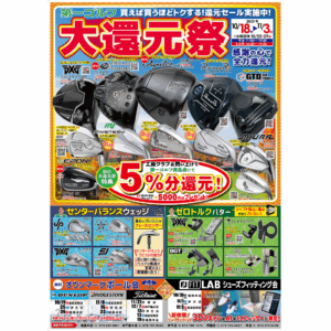 なんとお買い上げ金額の5%分の第一ゴルフ商品券をプレゼント!※税抜価格